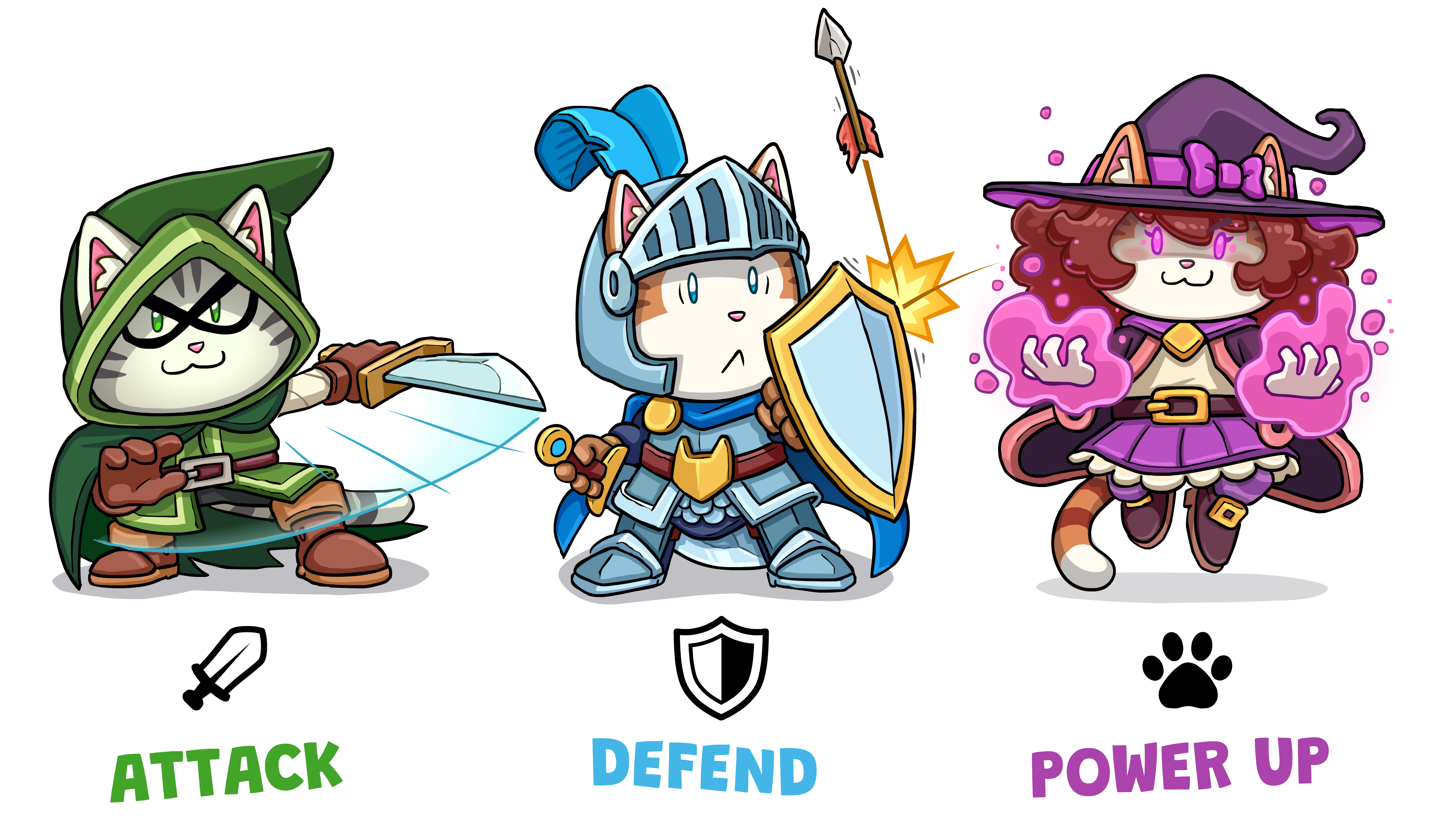 From the opportunistic rogue to the wildly destructive mage, each hero has a distinct playstyle powered by elegant mechanics. Simply roll the Battle Dice and look for symbols: Swords deal damage, shields block damage, and paws activate powerful spells and abilities!